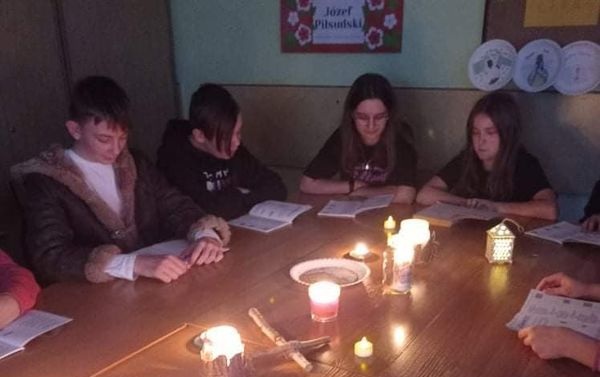 "Ciemno wszędzie, głucho wszędzie! Co to będzie, co to będzie?" Uczniowie klasy siódmej wspólnie czytali dziś "Dziady cz.II" A. Mickiewicza. Zaciemniona sala, świece i elementy charakteryzacji podkreśliły tajemniczość dramatu. "Oswojona" w ten sposób lektura spodobała się całej klasie. |