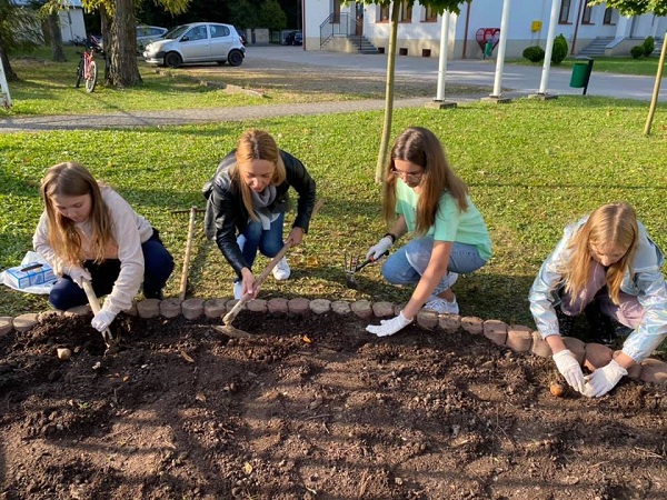 Sadzimy dobro. W ramach kampanii edukacyjno - charytatywnej, nasza szkoła przyłączyła się do akcji sadzenia żonkili- tworzenia pół nadziei. Ma ona charakter symboliczny, a jej celem między innymi uwrażliwienie dzieci i młodzieży na potrzeby chorych. Akcja integruje osoby, które chcą tak jak my włączyć się w dzieło pomocy hospicjum. Posadzone dzisiaj cebulki żonkilowe odrodzą się na wiosnę i rozkwitną w naszym ogrodzie.