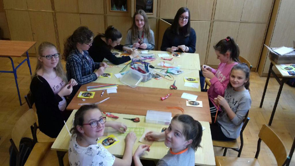 WARSZTATY PLASTYCZNE W dniach 24 lutego w sobotę oraz 27 lutego we wtorek odbyły się w naszej szkole warsztaty plastyczne, na których chętni uczniowie wykonywali kartki wielkanocne metodą quillingu. Jest to technika plastyczna z rodzaju papieroplastyki, która polega na tworzeniu ozdób z wąskich pasków papieru zwiniętych w kształt spirali i następnie uformowanych i przyklejonych odpowiednim klejem. Jest to technika bardzo pracochłonna, wymagająca dużego wkładu pracy i czasu. Efektem zajęć są kartki, które zostaną przekazane na planowany kiermasz wielkanocny.