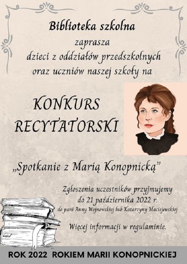 Jury oceniało występy wszystkich uczestników wg następujących kryteriów: kultura słowa, intonacja, interpretacja utworu oraz ogólny wyraz artystyczny. Prezentacje recytatorskie mogły być wzbogacone o rekwizyt, element ruchu, gest sceniczny czy kostium. Poziom konkursu był bardzo wysoki, jury miało twardy orzech do zgryzienia, ponieważ wszyscy uczestnicy zaprezentowali się od jak najlepszej strony. Uczniowie zauroczyli jury piękną sztuką recytacji i fenomenalną pamięcią. W grupie przedszkolnej zostały nagrodzone wszystkie dzieci biorące w nim udział: Maja Dziedzic, Marysia Cygan, Gabrysia Graba, Lena Lorens, Kacper Podkul, Mikołaj Muroń i Hania Klamut. Ogromne brawa dla przedszkolaków za piękną recytację wybranych przez nich wierszy. Za udział w konkursie otrzymali gromkie brawa, pamiątkowe dyplomy i nagrody książkowe. Laureaci konkursu w kategorii klas I-III: I miejsce – Zofia Kielar i Julian Zajdel II miejsce – Hania Całka, Blanka Jasłowska i Maja Hajduk III miejsce – Oliwia Szafran Wyróżnienia otrzymali: Milena Hajduk, Filip Sikora i Kacper Gondela. W kategorii uczniów z klas IV- VIII przyznano trzy równorzędne nagrody dla Julii Podkul, Pauliny Pelc i Wiktorii Omachel. Wyróżnienia trafiły do Weroniki Boczar, Kingi Florek, Amelii Gondela i Mileny Jasłowskiej. Wszyscy uczestnicy konkursu otrzymali pamiątkowe dyplomy, wyróżnieni ozdobne zakładki do książek a laureaci nagrody książkowe w postaci wierszy i nowel Marii Konopnickiej. Składamy serdeczne podziękowania dla Rady Rodziców, która ufundowała nagrody. Wyrazy uznania dla laureatów! Gratulujemy dla wszystkich uczestników. Dziękujemy Wam za dostarczone nam, piękne emocje. |