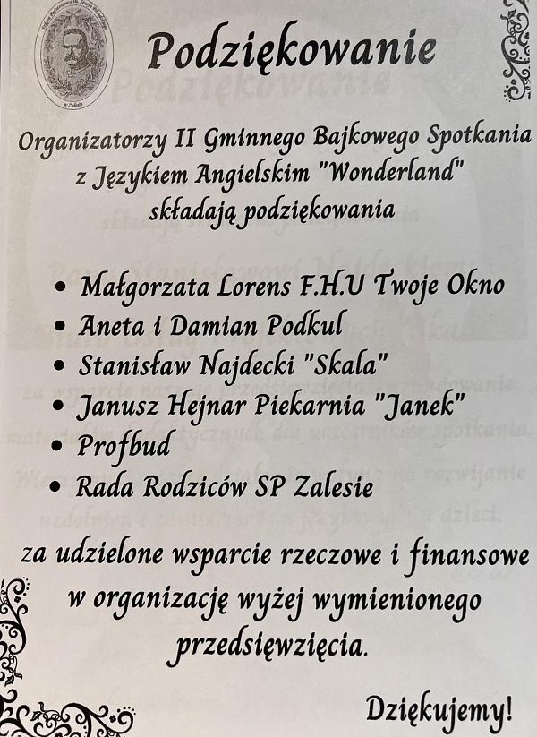 Gminne Bajkowe Spotkanie z Językiem Angielskim „Wonderland” 1 lutego w naszej szkole odbyło się Gminne Bajkowe Spotkanie z Językiem Angielskim "Wonderland". Spotkanie rozpoczęło się przedstawieniem bajki „ Graffalo” w wykonaniu uczniów klasy 3. Kolejno czteroosobowe delegacje trzecioklasistów ze szkół podstawowych z terenu gminy Miejsce Piastowe w miłej atmosferze zmagali się z zadaniami językowymi. Bajkowej scenerii towarzyszył uśmiech, radość, zabawa i zadowolenie dzieci. Pani Wójt Dorota Chilik wręczyła uczestnikom dyplomy, podziękowania oraz upominki. Dziękujemy wszystkim za udział w spotkaniu.
