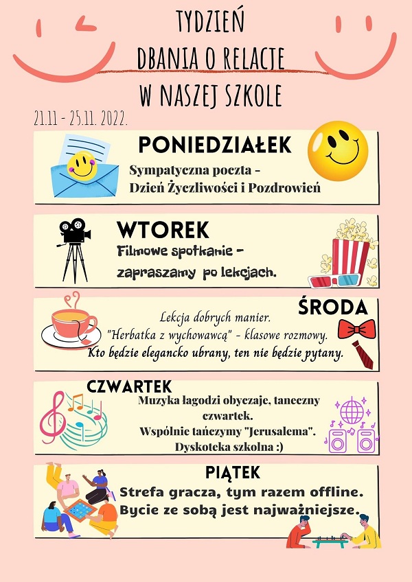 Od 2 listopada 2022r. uczniowie i rodzice naszej szkoły mają możliwość skorzystania z porad psychologa szkolnego. Oto kilka informacji dotyczących sytuacji, w których można skorzystać z porady psychologa: Uczniu, do psychologa szkolnego możesz przyjść, gdy: - chciałbyś z kimś porozmawiać, - masz problem i nie wiesz jak go rozwiązać, - masz złe samopoczucie, coś Cię dręczy, - stoisz przed trudnym wyborem i potrzebujesz pomocy w podjęciu decyzji, - chcesz opowiedzieć o czymś, co ci się przydarzyło, - masz problemy w rodzinie, trudną sytuację w domu, - masz problemy w relacjach z innymi uczniami, - ktoś z twojego otoczenia ma problem i czujesz, że potrzebuje pomocy.