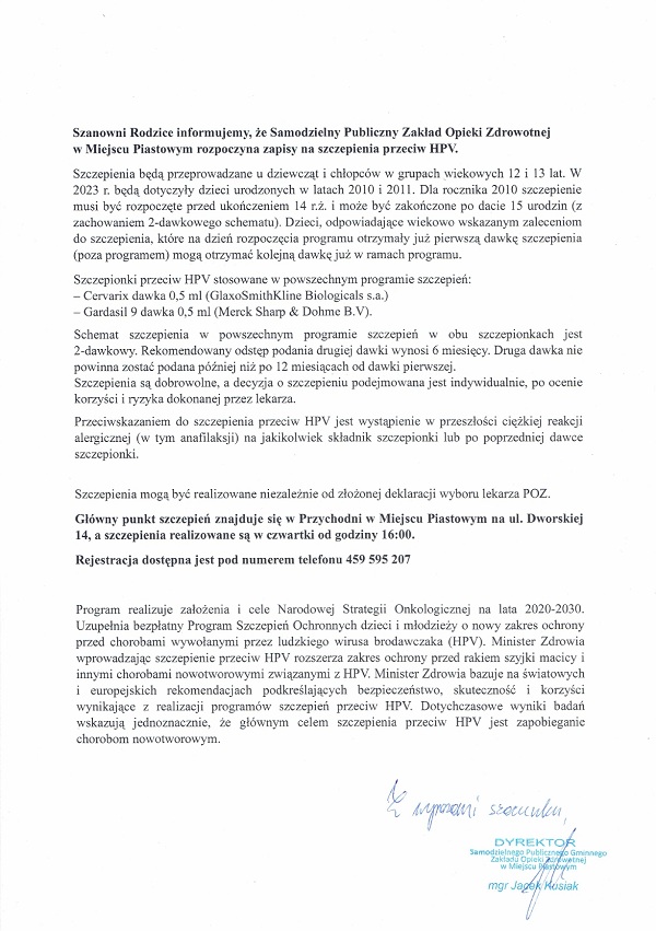 Informacja dla rodziców dzieci urodzonych w latach 2010 i 2011