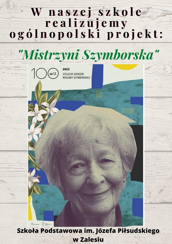 Mistrzyni Szymborska Społeczność naszej szkoły przystąpiła do ogólnopolskiego projektu pod nazwą "Mistrzyni Szymborska". W tym roku przypadła setna rocznica urodzin laureatki Nagrody Nobla. Na korytarzu szkolnym pojawiła się już gazetka z ciekawostkami na temat poetki. Niebawem przystąpimy do kolejnych działań.