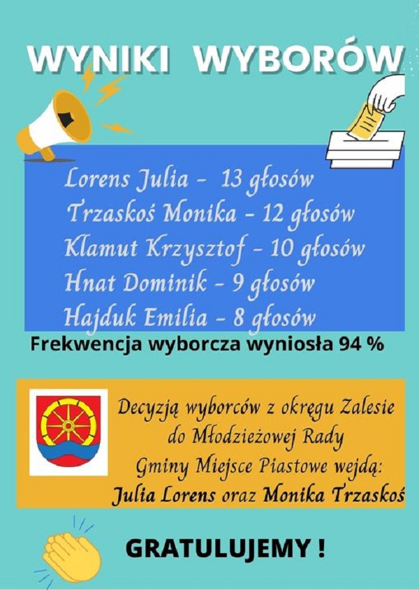 Gratujemy! Nagrody zwycięzcom wręczyła pani Wójt Gminy Miejsce Piastowe Dorota Chilik oraz pani dyrektor Szkoły Podstawowej im. Józefa Piłsudskiego w Zalesiu Daniela Kokoszka.