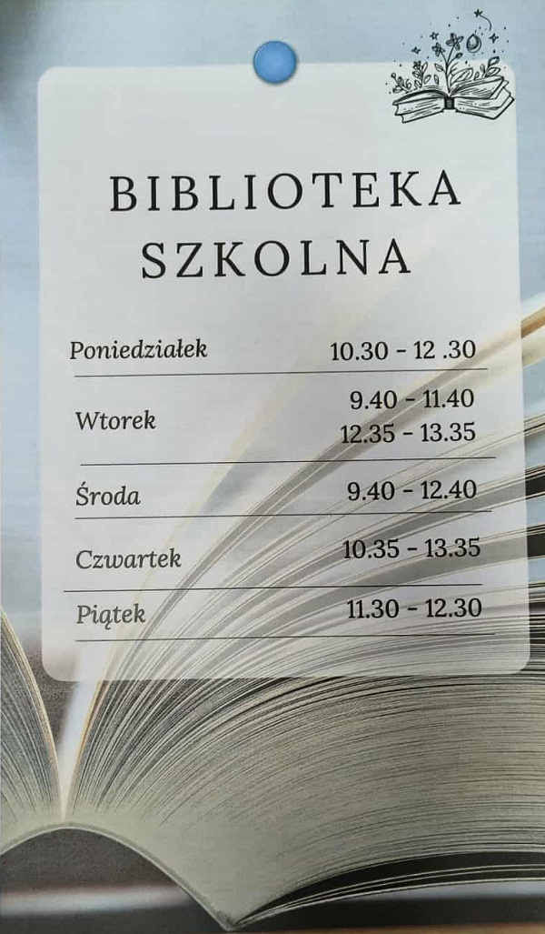 szkolnym 2025/2026 biblioteka szkolna czynna wg harmonogramu: